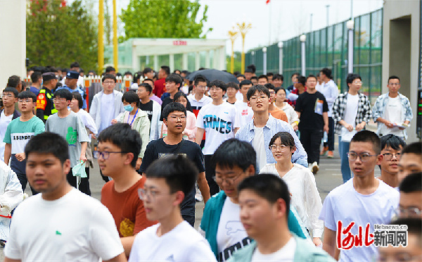 6月7日上午,高考第一场语文科目考试结束后,考生走出考点。河北日报记者 赵永辉 摄