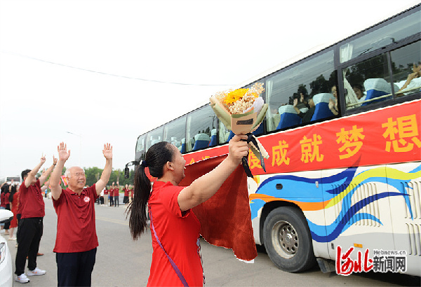 6月7日早晨,河北省南宫市丰翼中学老师和家长为考生送考。河北日报记者 赵永辉 摄