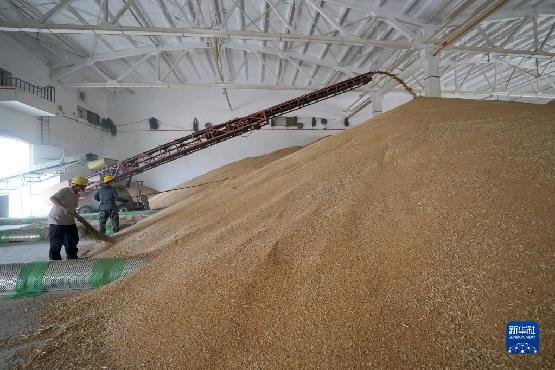 6月18日,在位于柏乡县的河北柏粮粮食储备集团有限公司,工人在查验收购的小麦。时下,河北省邢台市柏乡县的夏粮收购工作全面展开,粮食企业忙着进行称重过磅、抽样检测、卸车入库等工作,确保小麦颗粒归仓。新华社记者 牟宇 摄