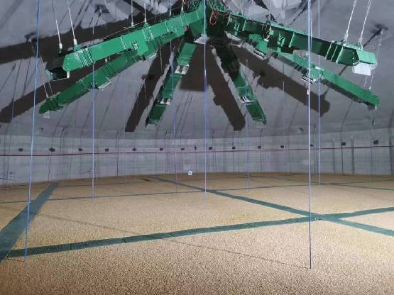 中央储备粮秦皇岛直属库有限公司海港粮食储备基地,粮仓内的智能化通风设备为粮食提供安全保障。(新华社记者 郭雅茹摄)