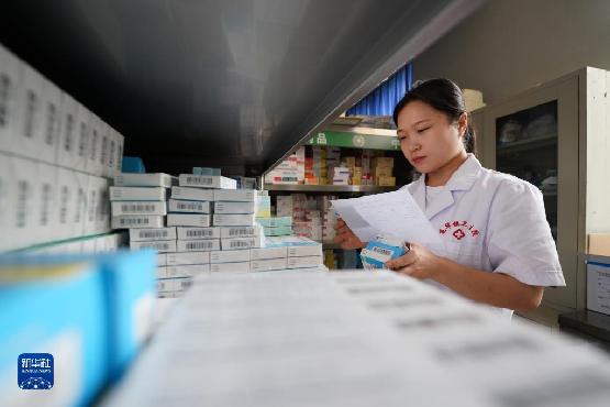 6月25日,河北省柏乡县龙华镇卫生院药房工作人员在为患者取药。近年来,河北省柏乡县实施“行走的医院”项目,为全县121个行政村的乡村医生配备了全科医生助诊包等设备。利用全科医生助诊包,村医可为村民进行血液化验、尿液检验、心电图检查、超声检查等检测项目,并可通过设备实时向柏乡县中心医院医生问诊,将优质医疗资源送到群众家门口。新华社记者 牟宇 摄