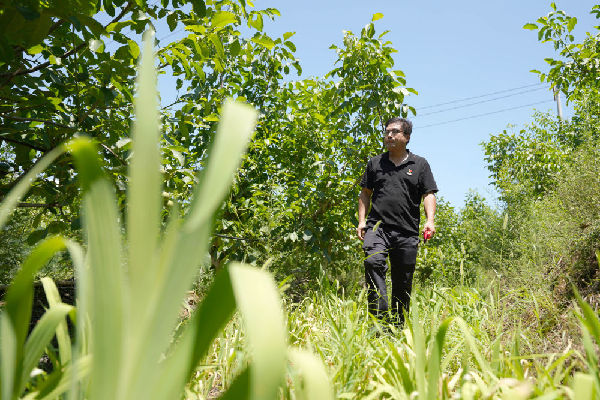 ↑6月30日,贾志华在河北省临城县贾庄村管理种植的核桃。