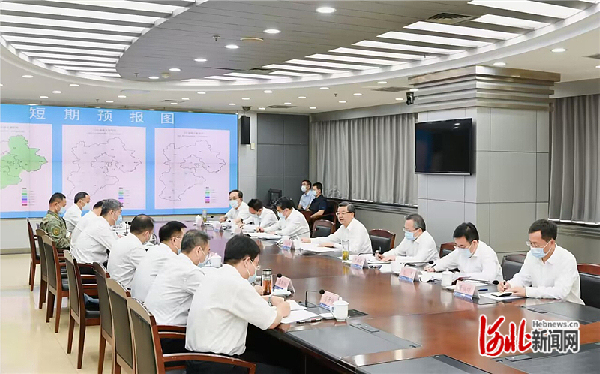 调研结束后,倪岳峰主持召开全省防汛抗旱工作视频调度会议。省气象局、省应急管理厅、省水利厅、省住建厅负责同志汇报了我省汛情趋势预测和防汛抗旱工作情况。秦皇岛市、保定市、雄安新区、承德市、张家口市、唐山市负责同志汇报了当地防汛抗旱及相关工作情况。
