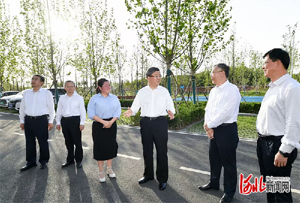 7月5日,省委书记、省人大常委会主任倪岳峰在雄安新区金湖公园停车场调研。 河北日报记者赵海江摄