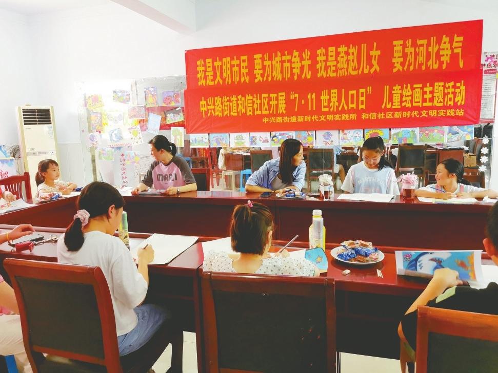 近日,信都区中兴路街道新时代文明实践所与和信社区新时代文明实践站,联合开展了以“7.11世界人口日”为主题的儿童绘画活动,来自辖区的20余个家庭孩子在爸爸妈妈陪同下参加了此次活动。杨柳、王盼盼摄