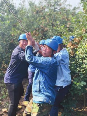 7月30日,受强降雨影响,信都区路罗镇牛豆台村多处电力线路受损,电杆倾倒。国网邢台市环城供电公司工作人员迅速到达现场,对歪斜杆塔进行矫正修复。目前,该村已全面恢复供电。 韩旭摄