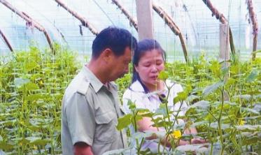 8月1日,柏乡县农技专家到县龙华镇马庄村指导黄瓜种植防灾减损措施。 冀文龙 李雪其 文/图