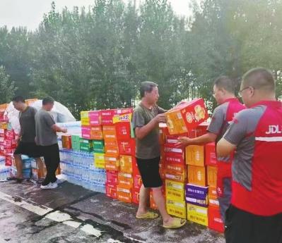 日前,市邮政管理局组织京东快递公司为受灾群众捐献方便面、矿泉水、面包等物资,为抗洪抢险救灾贡献行业力量。 巩晶晶摄