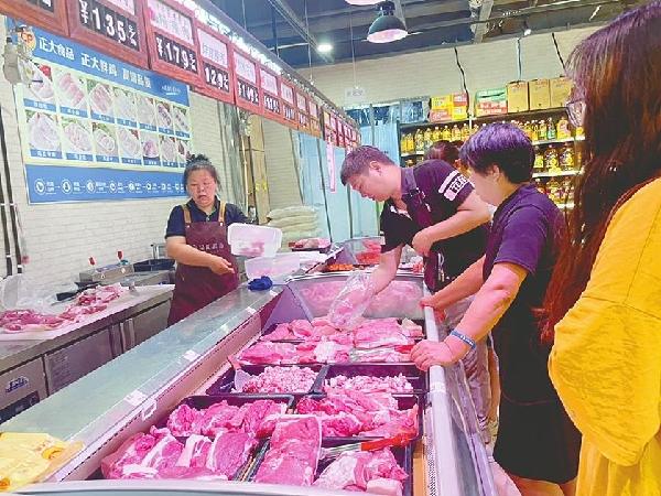 从事猪肉批发多年的老李介绍,当天猪肉批发价13元,10天前的批发价为10.5元,每500克涨了2元多。他分析,按照往年规律,进入8月份以后,随着大中专院校开学的采购和中秋、国庆节的到来,或将开启下半年猪肉消费旺季。不过,我市及全国生猪产能平稳,市场供应充足,猪肉价格也不会有大的起伏。(邢台新闻传媒中心记者李平文/图)