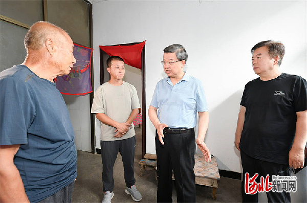 8月20日,省委书记、省人大常委会主任倪岳峰到保定市检查防汛抗洪救灾和灾后恢复重建工作。这是倪岳峰在曲阳县齐村镇小口头村随机走访群众,了解恢复重建情况。 河北日报记者赵海江摄
