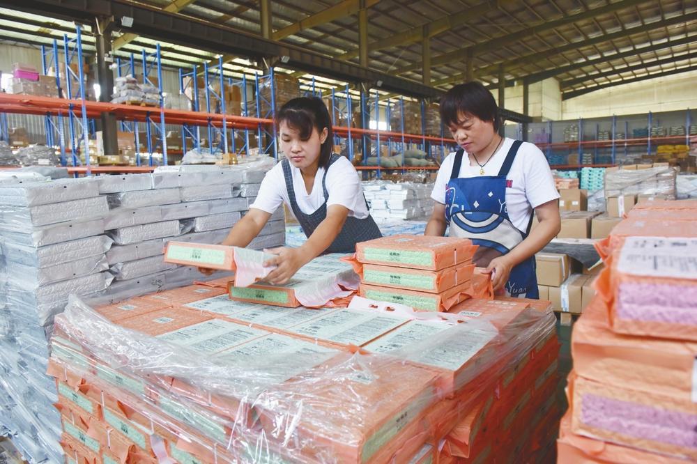 8月30日,南和区和阳镇一家宠物用品电商企业工人在仓库打包产品,准备发货。