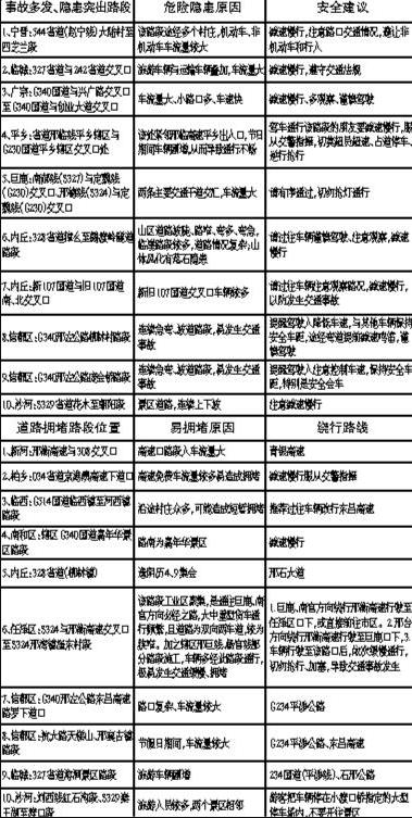 针对上述情况,交警部门将有针对性地调整勤务部署,最大限度将警力部署在路面上,加强山区道路的巡逻管控,防范交通拥堵。同时根据道路情况,梳理出10条危险隐患路段和10条易拥堵路段,请广大交通参与者合理选择,谨慎驾驶,杜绝交通违法行为。