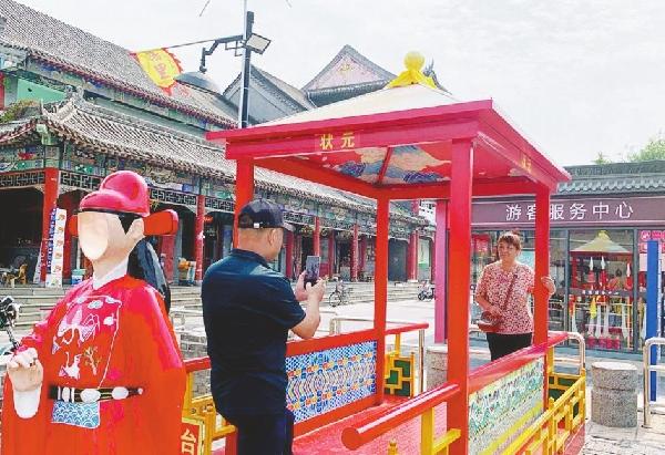 10月5日,游客在襄都区清风楼府前街旅游景点打卡留念。今年以来,我市挖掘和利用历史文化资源,打造城市名片,大力实施文化兴市战略,助推城市经济发展。本报记者 张驰摄