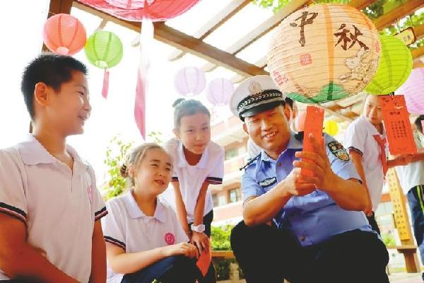 中秋假期,平乡县公安局交警大队民警走进县直第一小学,举办了交通安全知识有奖竞猜活动。孙建伟、崔信行摄