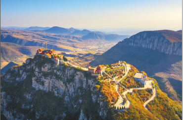 位于沙河市王硇村正南的红枫山,海拔915米,为周围群峰之首,虽入初冬,栌叶仍红。(范林锁摄)