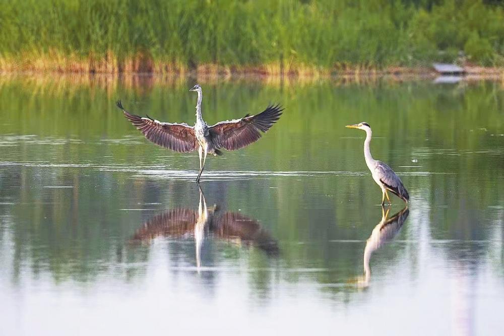 在宁晋县凤鸣湖畔,湖面清波荡漾、芦苇摇曳,一群群鸟儿时而在空中翻飞,时而停下觅食。随着生态环境的改善,这些年,大批迁徙的候鸟将此作为了中转栖息地。站在凤鸣湖岸边向远眺望,鹭鸣凫舞、百鸟齐飞,景致之美,超出想象。