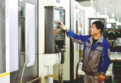 日前,威县一家汽车轮毂生产企业工人在操作数控机床生产轮毂。
