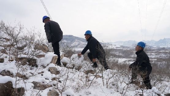 国网河北省电力有限公司平山县供电分公司员工徒步上山开展雪后特巡。(受访单位供图)