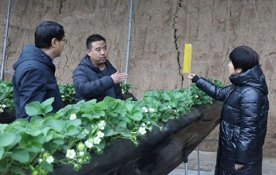 沙河市农技人员在指导农户管理草莓。(受访者供图)