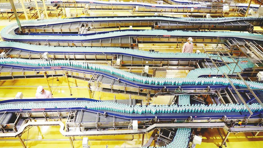 今麦郎饮品生产线正在生产。 成梅、贾静摄