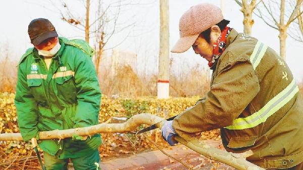 本报讯近日,市城管局七里河建管中心紧抓苗木冬季休眠的良好时机,全力开展冬季绿化管护作业,对辖区内苗木进行修剪整形。