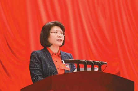 宋华英作政府工作报告。 本报记者 郝德明摄