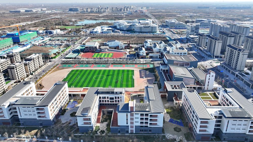 雄安新区启动区的北京四中雄安校区和雄安史家胡同小学(无人机照片)。2023年11月30日新华社记者牟宇 摄