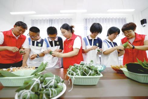 日前,平乡县世纪花园社区党支部的志愿者们走进县实验学校,与师生齐聚一堂,话端午、包粽子、系五彩绳,为孩子们共度丰富多彩的端午节主题活动。现场,孩子们在志愿者的指导下,捋粽叶、做“漏斗”、填糯米、放馅料、扎封口,一气呵成。孩子们在劳动中体会乐趣,感受中华民族传统文化的独特魅力。 本报记者谢龙通讯员 李国军摄