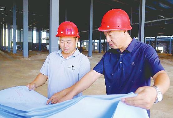 在清河经济开发区河北永昌车辆部件科技有限公司改扩建项目现场,施工方正在研究项目图纸。