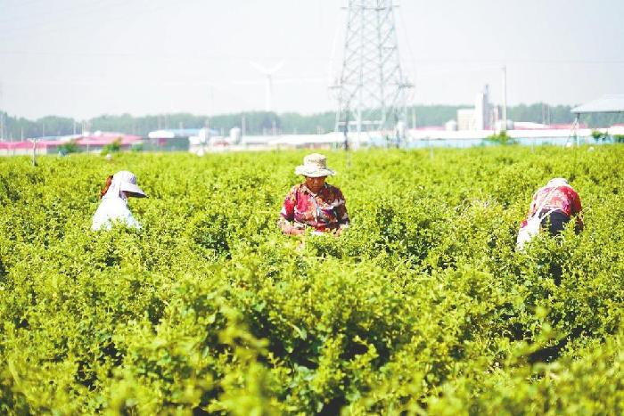 “现在种植的金银花是咱本地专家自主培育的‘巨花一号’,含有16种氨基酸、17种矿物质,绿原酸、本犀草苷等成分含量丰富。”巨鹿县堤村乡堤村集村大美桑田绿色种植基地种植户杨培武介绍。