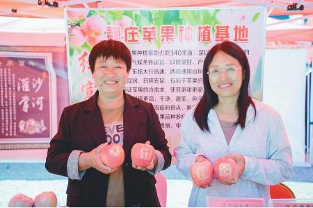 ①果农在沙河市农产品发布推介会上展示丰收的苹果。 本报记者 黄涛通讯员 高儒森摄