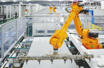 2月7日,位于市经开区的晶澳(邢台)太阳能有限公司电池串自动排版机正在作业。