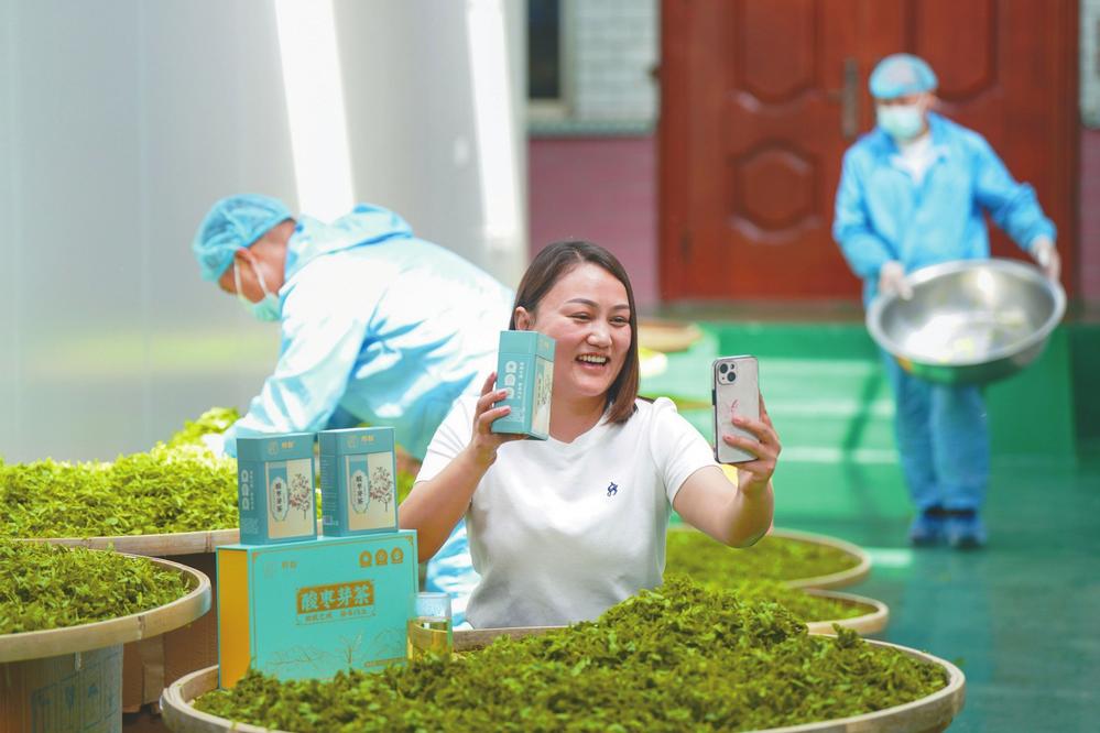 近日,内丘县一家酸枣加工企业员工在直播销售酸枣芽茶。近年来,内丘县依托当地山地丘陵地理优势,因地制宜引导农民规模化发展酸枣种植,并延伸产业链条,将酸枣芽深加工成酸枣芽茶,通过电商平台销往全国各地,开辟出一条群众增收致富新路径。