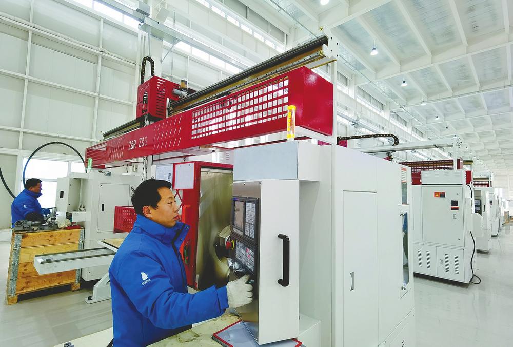 近日,在隆尧县远大阀门集团有限公司锻钢机加工数字化车间,员工操控桁架式机械手加工阀门产品。