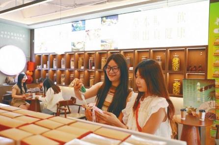 5月30日,在“泉城扁鹊堂”好南关旗舰店内,游客购买“药香囊”欢度端午。近年来,我市依托扁鹊品牌优势,立足打好“扁鹊康养”牌,积极探索“文旅+康养”新业态,在中心城区布局打造40家泉城扁鹊堂,深入挖掘扁鹊中医特色资源,持续提升中医服务水平,不断增强康养产业品牌影响力。 本报记者 张驰摄