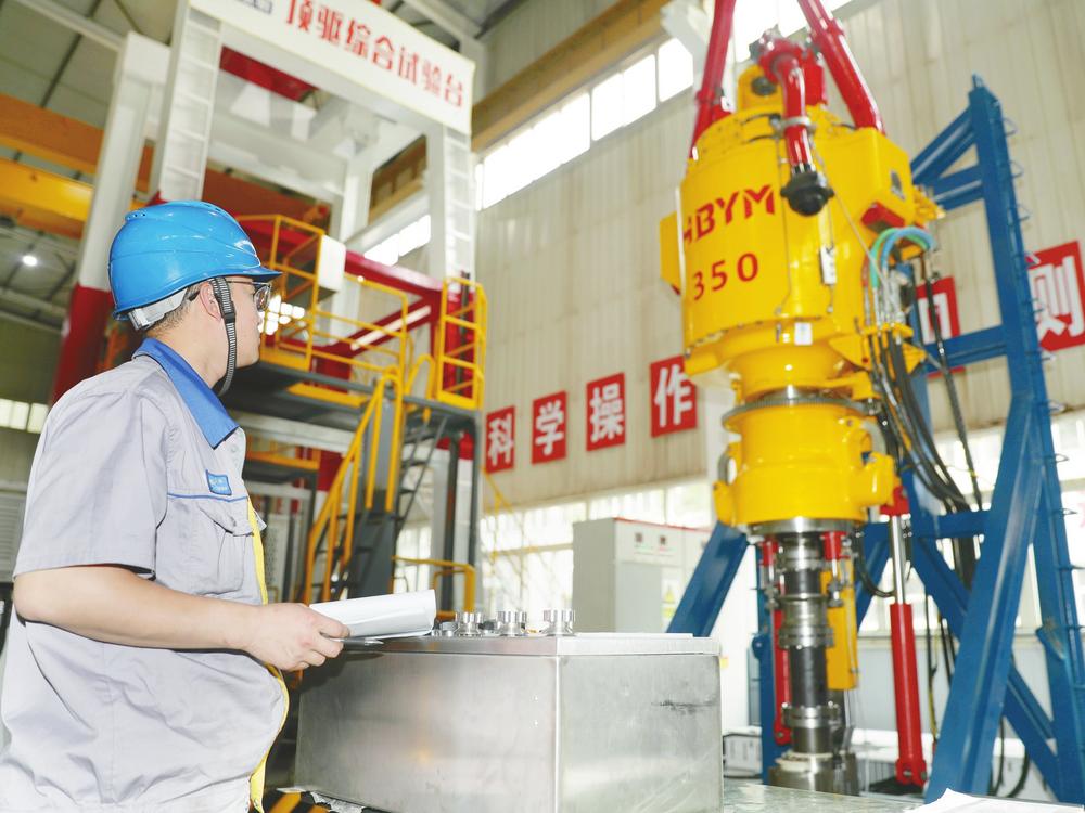 近日,在任泽区河北永明地质工程机械有限公司,工人正在调试顶驱设备。