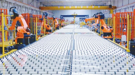 本报讯 10月10日,沙河市长城玻璃有限公司4#浮法玻璃生产线上,一片片晶莹剔透的超白玻璃在自动传送辊道上缓缓流动,机械臂灵活地将玻璃原片精准抓取、码放整齐。“今年以来,我们对这条生产线全面升级,应用了节能降耗浮法窑炉技术等最新成果,生产的高档门窗专用玻璃、高强度盖板玻璃等产品受到市场的青睐。”长城玻璃有限公司总经理武铮介绍。