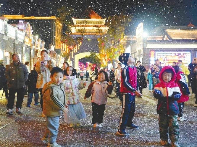 据悉,好南关街区人工造雪景观区于11月21日起每晚7点至9点开放5场,每场持续5分钟。