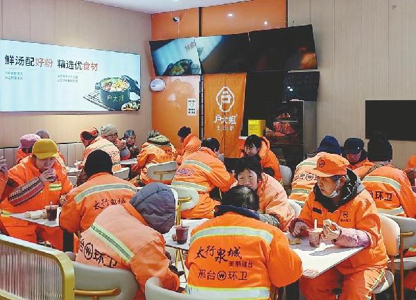 当日,我市20余家爱心单位同步开展送温暖活动,为城市美容师送上暖心早餐与节日问候。黄涛摄