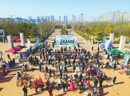 活动当天,骑行爱好者早早集结,随着主持人宣布活动开始,骑行队伍沿七里河北岸健身绿道有序出发,沿途饱览七里河体育公园、百泉鸳水公园等景点,在冬日暖阳中感受城市的生态魅力。