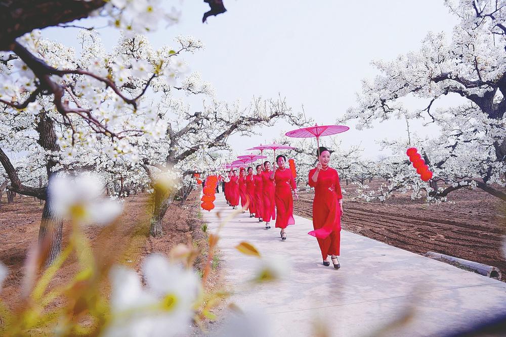 近日,隆尧县北楼乡周张村千亩梨园迎来盛花期。4月1日,赏梨花休闲游活动启动,精心推出梨园文艺汇演、梨花摄影大赛、特色产业展示等丰富环节,让游客赏梨花、感民俗,沉浸式体验乡土风情。韩文洲、潘志方摄